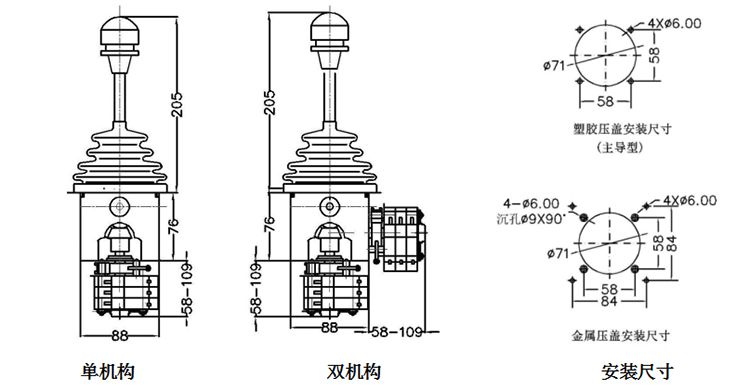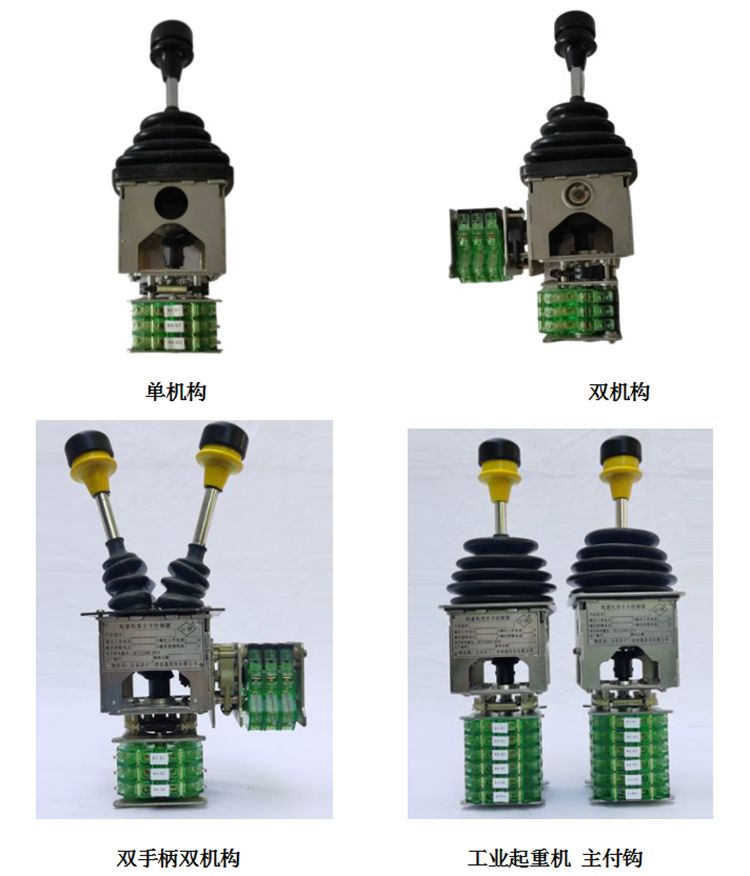 1.分類:控制器按手柄分為單手柄單機構、單手柄雙機構,雙手柄雙機構三種類型。單手柄單機構控制器操縱一個凸輪軸組合開關,其手柄“一”字形操作;單手柄雙機構控制器操縱兩個凸輪軸組合開關,其手柄“十”字形操作或聯動操作;雙手柄雙機構控制器“一”字形操作,每一個手柄操作一個凸輪軸組合開關。